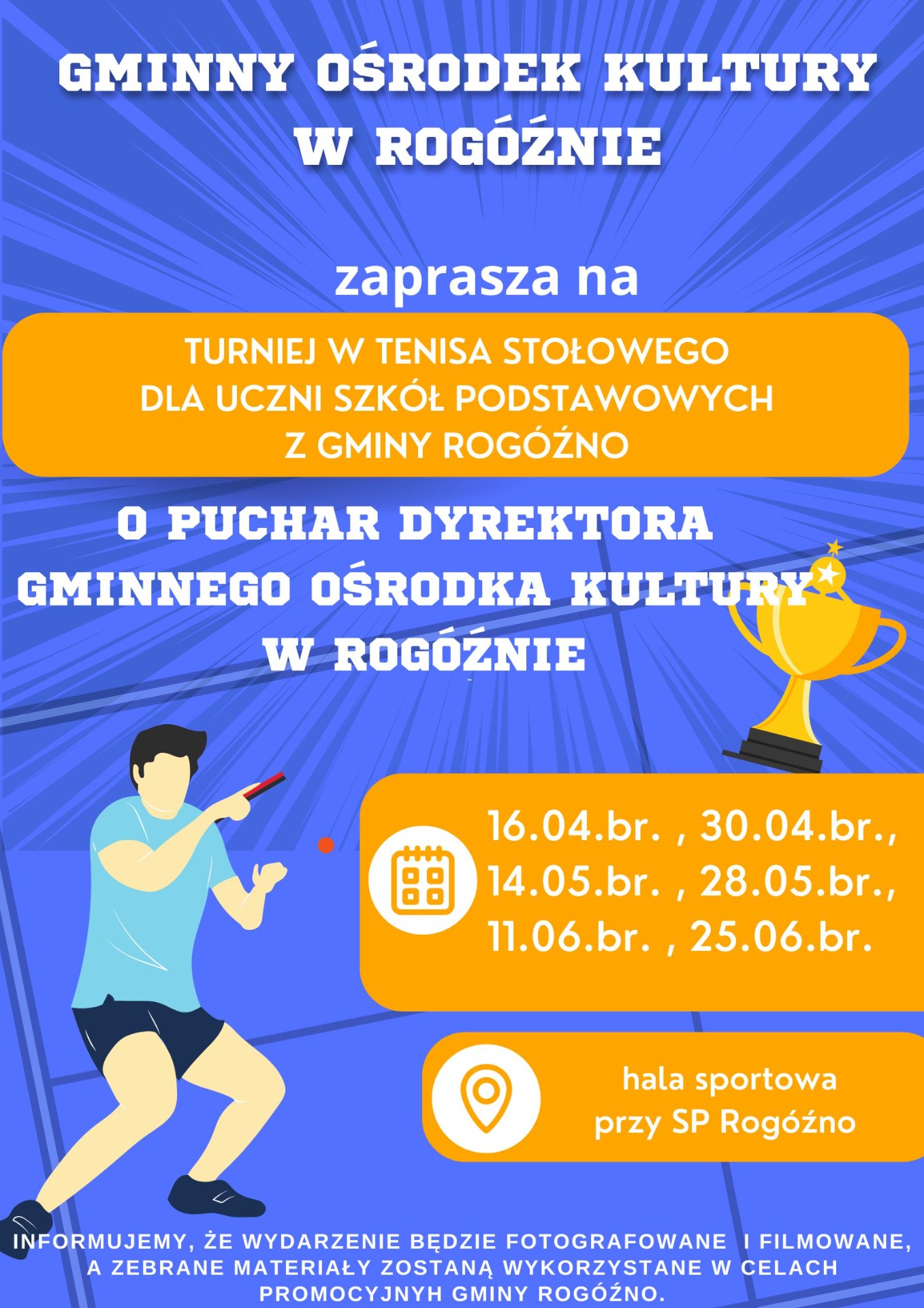 Gminny Ośrodek Kultury w Rogóźnie zaprasza na turniej, który odbędzie się w hali sportowej przy SP w Rogóźnie..